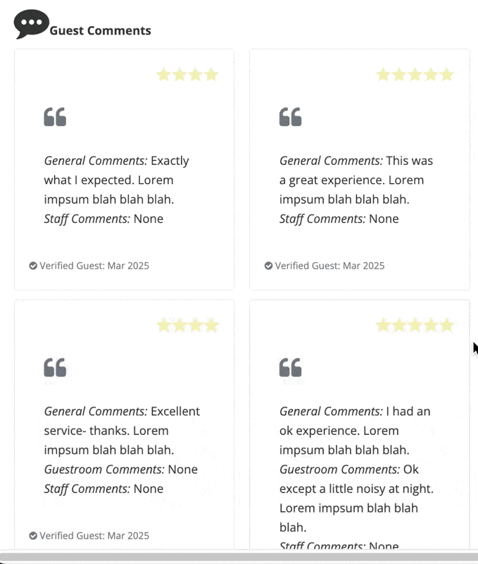 •Explore feedback by room, category, or time period